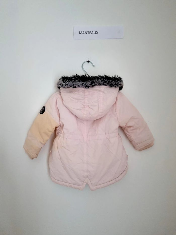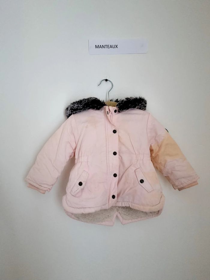 Manteau Obaibi 12 mois 74 cm De couleur rose clair avec une moumoutte noir/gris sur le pourtour de la capuche fermeture zip + bouton pression sur le devant avec poche Très peu porté en très bon état J'ai eu un petit problème au stockage, quelque chose s'est renversé sur un carton. Normalement tout part (pour les autre articles vendu c'est bien partis) je relave tout avant envoi. Mais au cas où , je prends en compte cette tache dans le prix , en seconde main elle vaut 8euros, je la met à 5e.