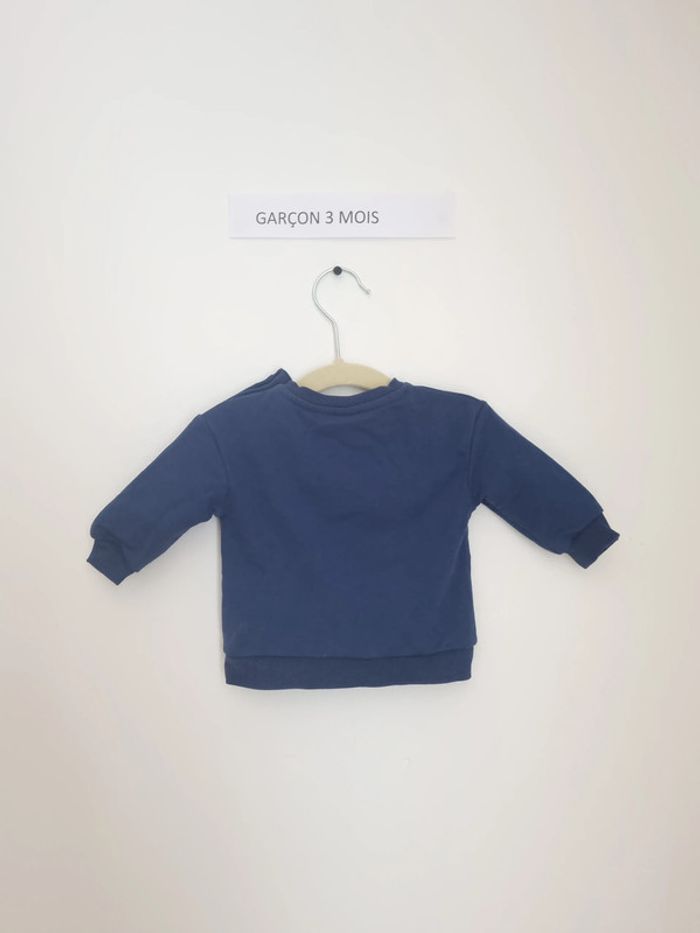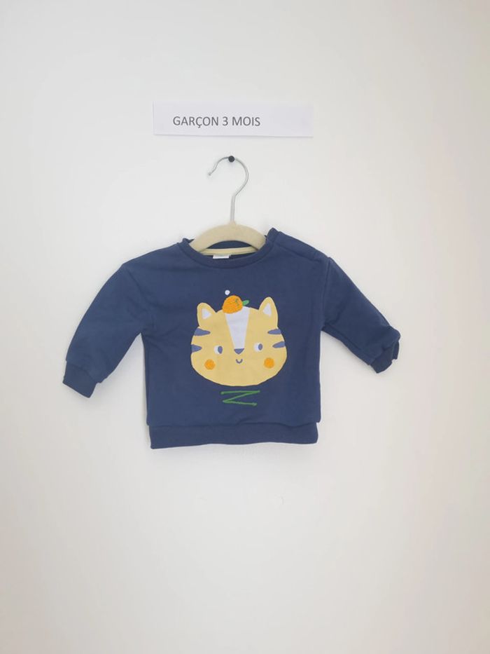 Pull léger manches longues Fermeture à l'épaule par bouton pression Bleu marine avec grande tête de tigre marque Tex 3 mois Porté quelques fois mais en très bon état