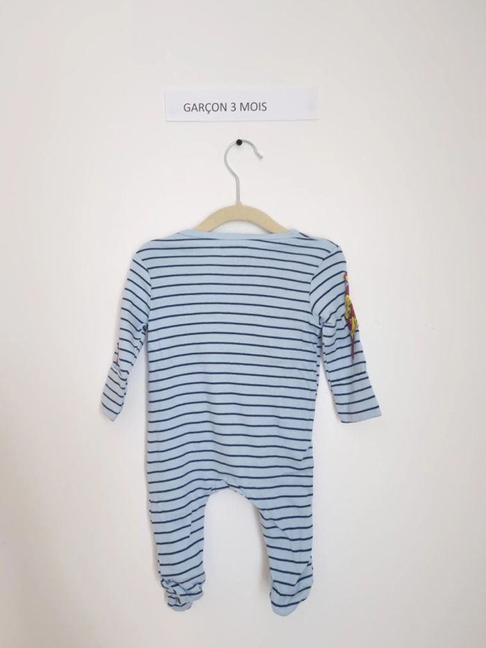 Pyjama 1 pièce léger utilisé plusieurs fois mais en très bon état marque Marvel fermeture par boutons pression sur l'avant bleu à rayures marine avec super heros ( spider-man, hulk, capitain america et iron man) plutôt garçon