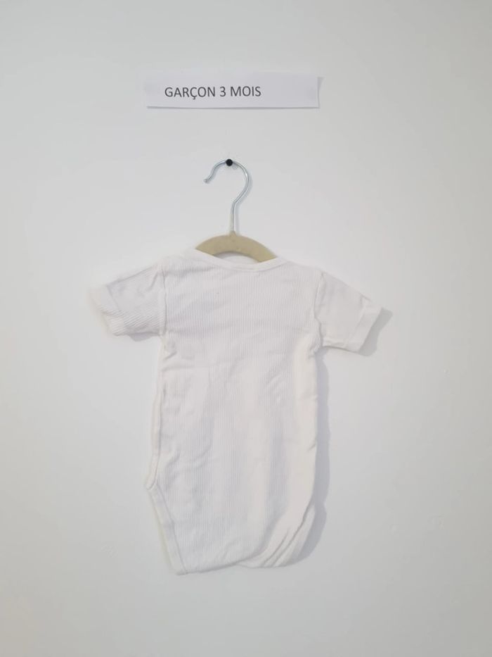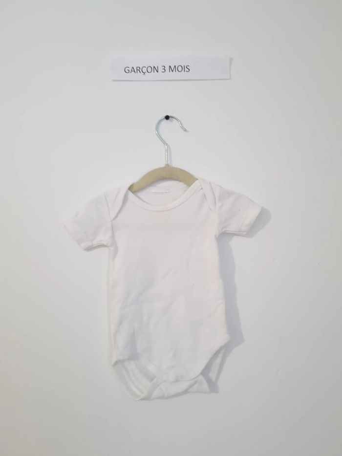 Body manche courtes à enfiler par encolure américaine boutons pressions présent au niveau de l'entre-jambe body uni blanc portés plusieurs fois mais en très bon état mixte 3 mois