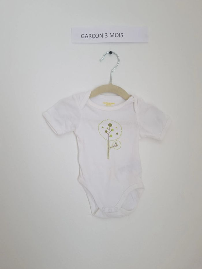 Body manche courtes à enfiler par encolure américaine boutons pressions présent au niveau de l'entre-jambe body blanc à motif plante verte portés plusieurs fois mais en très bon état mixte marque vertbaudet 3 mois 60 cm