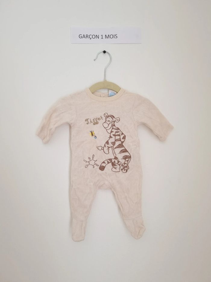 Pyjama 1 pièce chaud utilisé plusieurs fois mais en très bon état marque Disney taille 1Mois fermeture par boutons pression sur l'arrière beige avec Tigrou brodé en marron sur le devant mixte