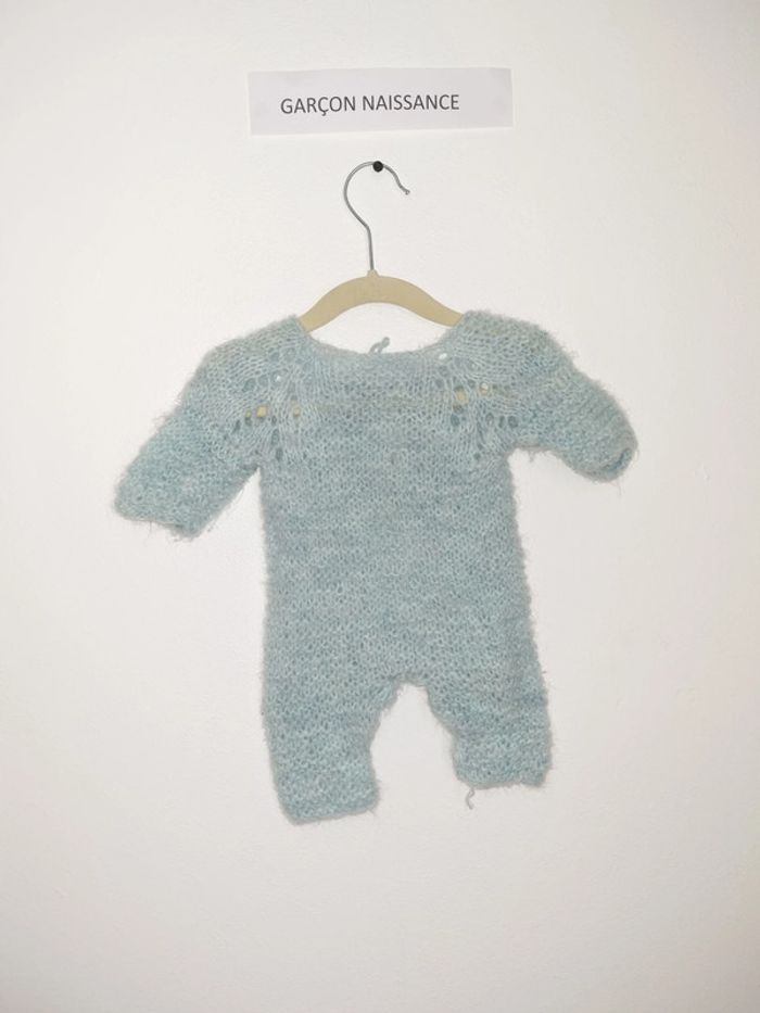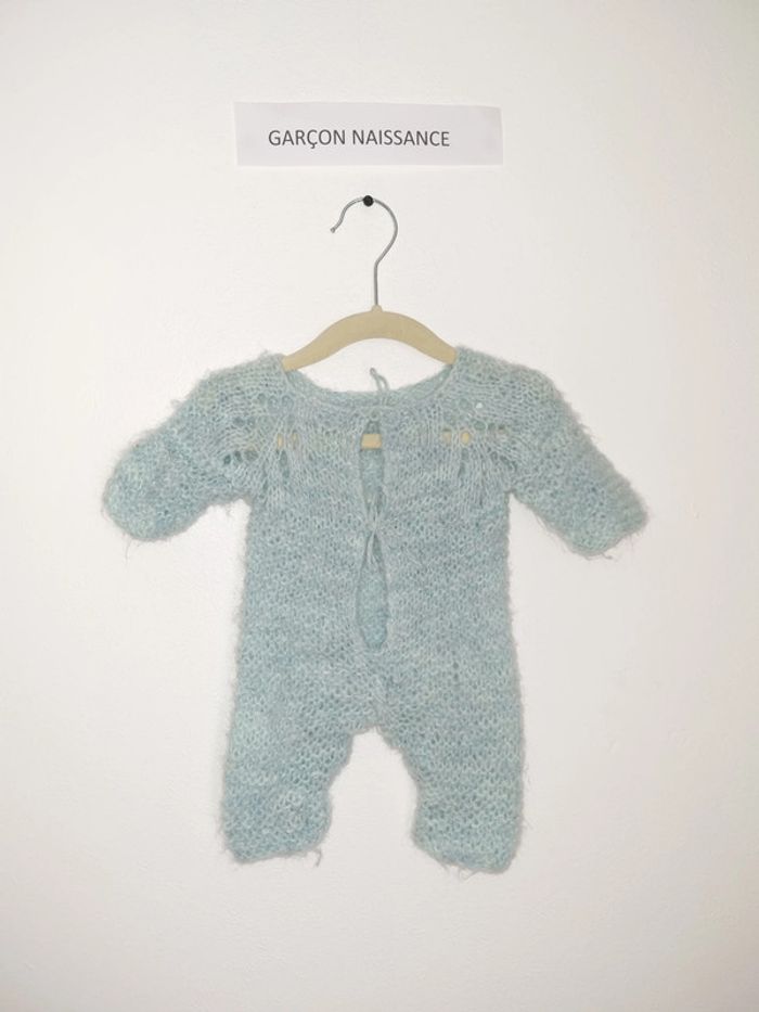 Pyjama 1 pièce chaud demi manche utilisé plusieurs fois mais en très bon état Fais main fermeture par laçage sur l'arrière uni bleu clair sans pied