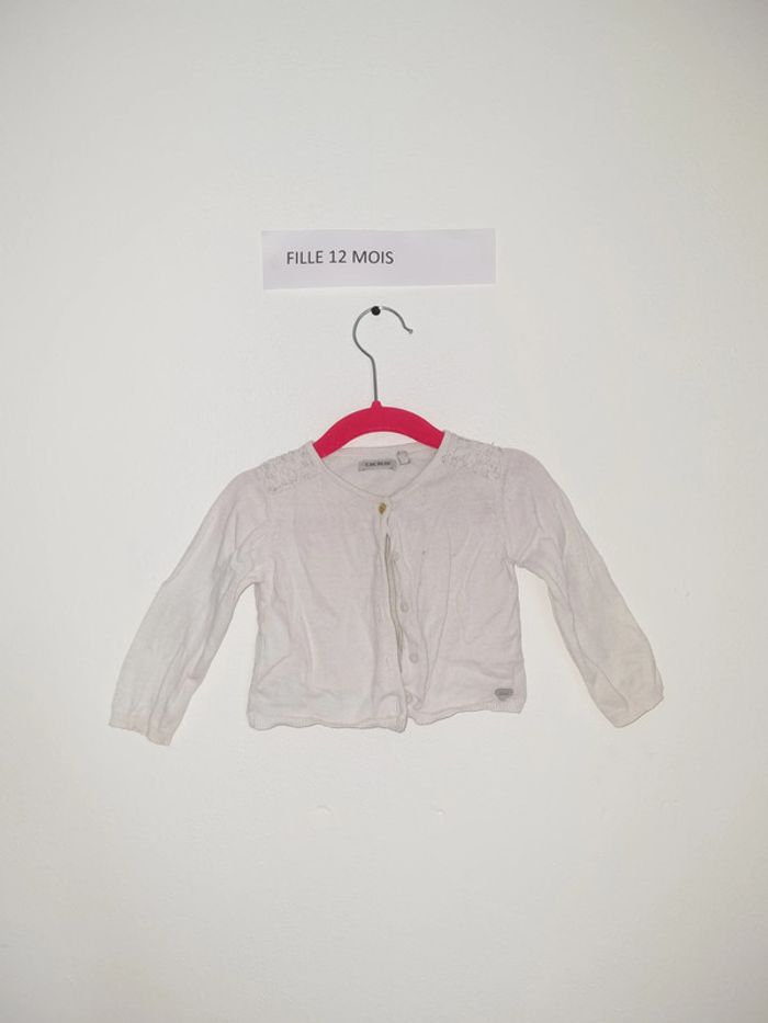 Gilet blanc IKKS 12 mois 74 cm uni avec dentelle sur les épaules , étoiles argentés sur les coudes fermeture par l'avant par boutons portés quelques fois en très bon état