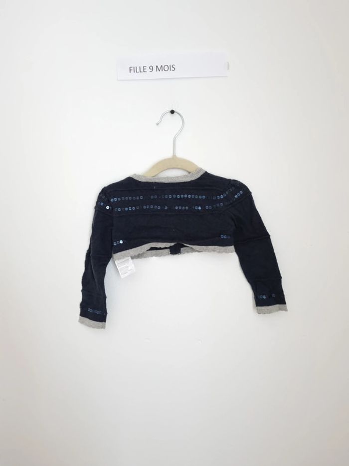Boléro Bóboli marine à sequin fermeture sur l'avant par boutons porté une ou deux fois en très bon état 9 mois 74 cm