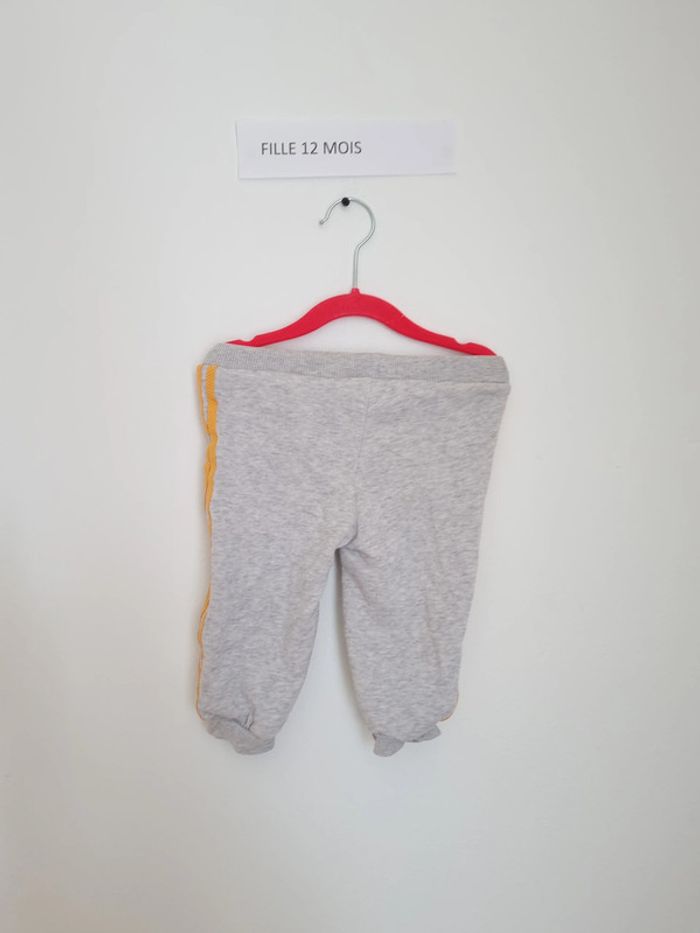Ensemble Adidas x Winnie L'ourson Taille 12 mois haut rose avec traits jaune et dessin winnie avec pot de miel à enfiler avec bouton pression au niveau d'un épaule le bas est gris avec trait jaune à enfiler ceinture élastique