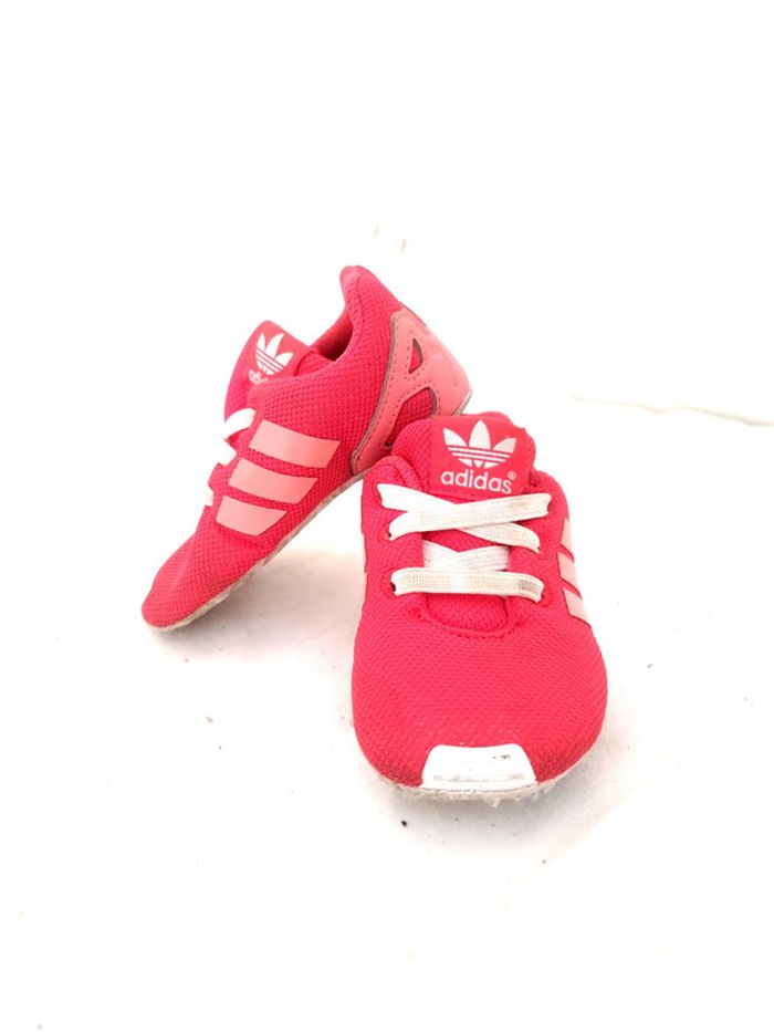 Basket Adidas rose avec lacets blanc taille 18 portés plusieurs fois mais en très bon état