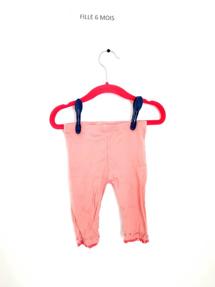Legging fille rose avec petite broderie aux chevilles poisson coquillages et pois porté plusieurs fois mais en très bon état à enfiler ceinture élastique sergent major 6 mois 68cm