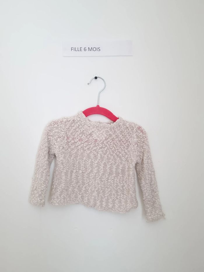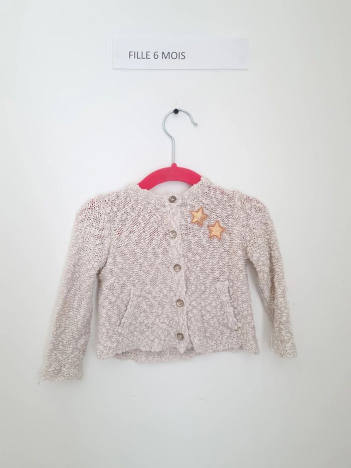 gilet creme fille et doré fermeture sur le devant par bouton motif étoile cousues avec poches porté plusieurs fois en très bon état Obaïbi 6 mois 68 cm Zara knitwear 6-9 mois 74 cm