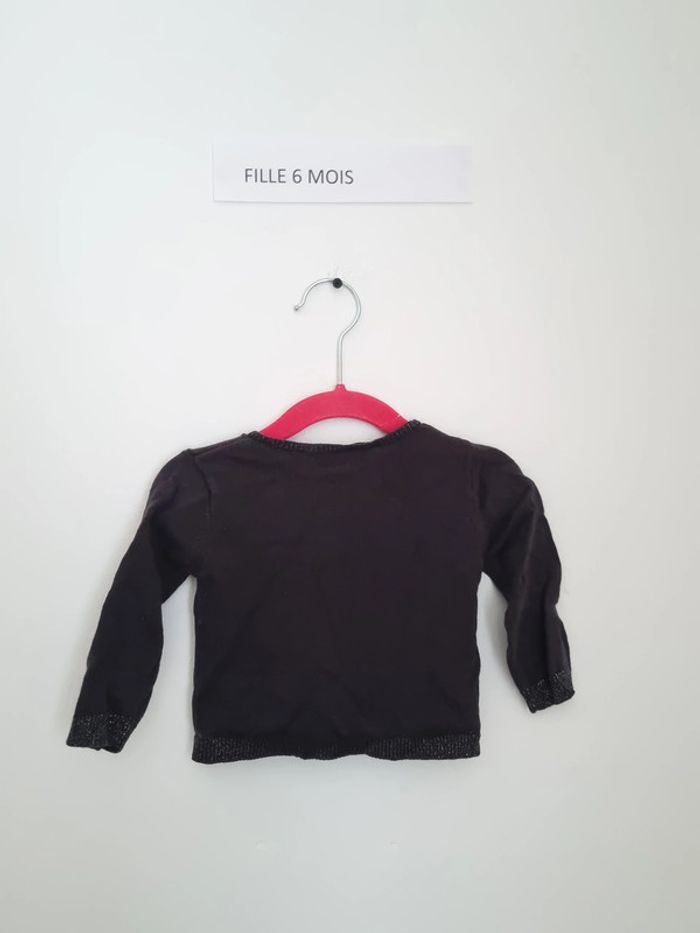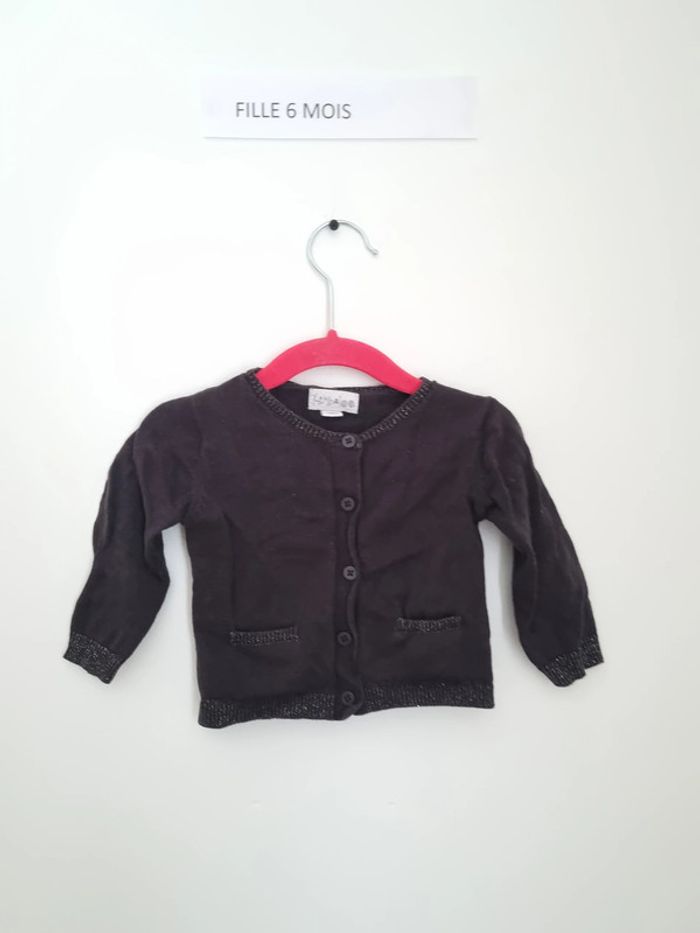 gilet gris foncé fille petit détails argenté au niveau des contours fermeture sur le devant par bouton porté plusieurs fois en très bon état avec poches marque Kimbaloo 6 mois