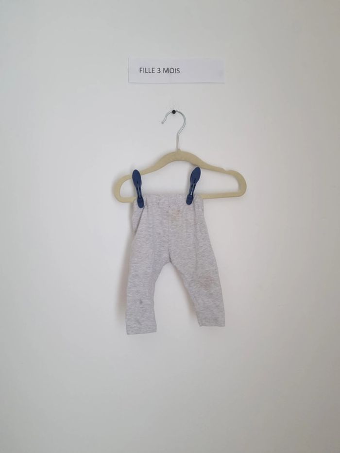 Legging gris avec noeud papillons de Minnie sur les genoux de couleur rose portés plusieurs fois mais en très bon état marque disney baby taille 3 mois