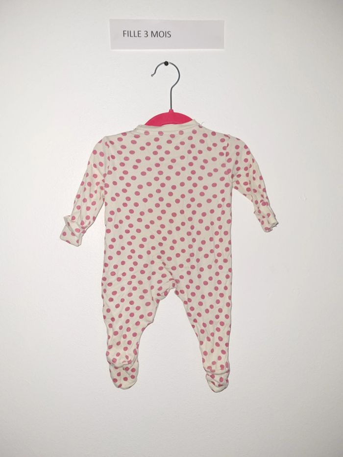 Pyjama 1 pièce blanc à pois rose fermeture sur le devant par bouton pression taille 3 mois porté plusieurs fois mais en bon état