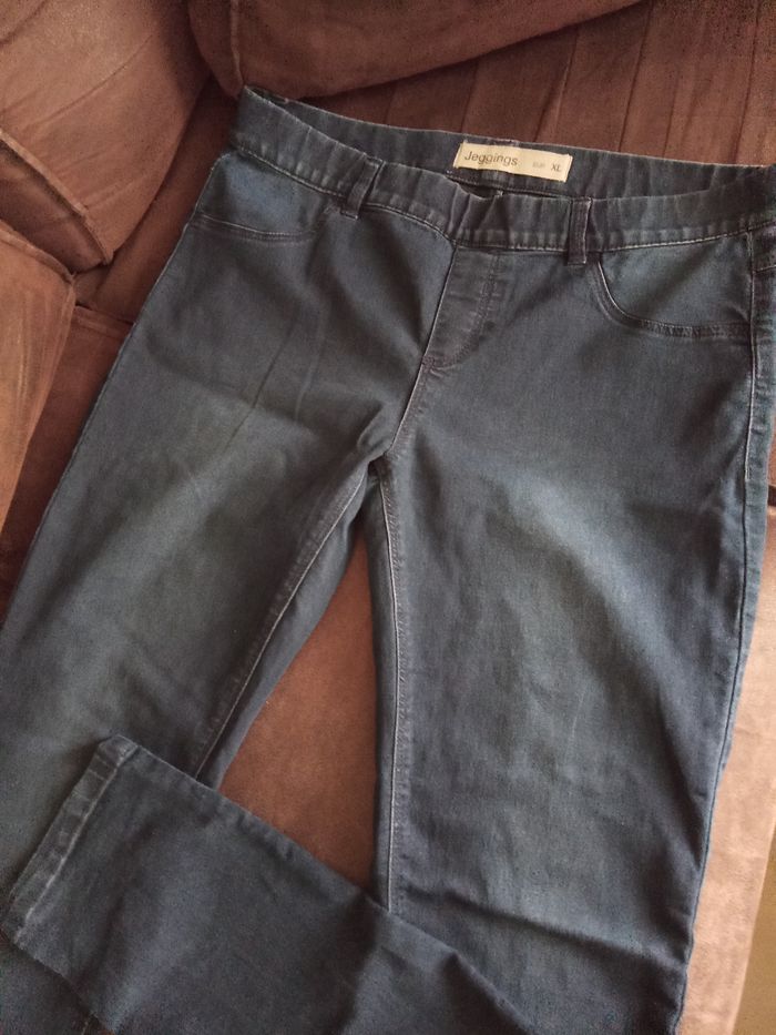 Jeggings légèrement aspect délavé Taille XL "Mim" Couleur: Bleu Foncé S'enfile, Taille entièrement élastiquée poches devant et derrière Dimensions: Longueur 99cm - Entrejambes 75,5cm - Taille non étirée 44,5cm Matière: 74% Coton + 2% Elasthanne + 24% Polyester Jeggings en parfait état (vendu comme sur les photos)