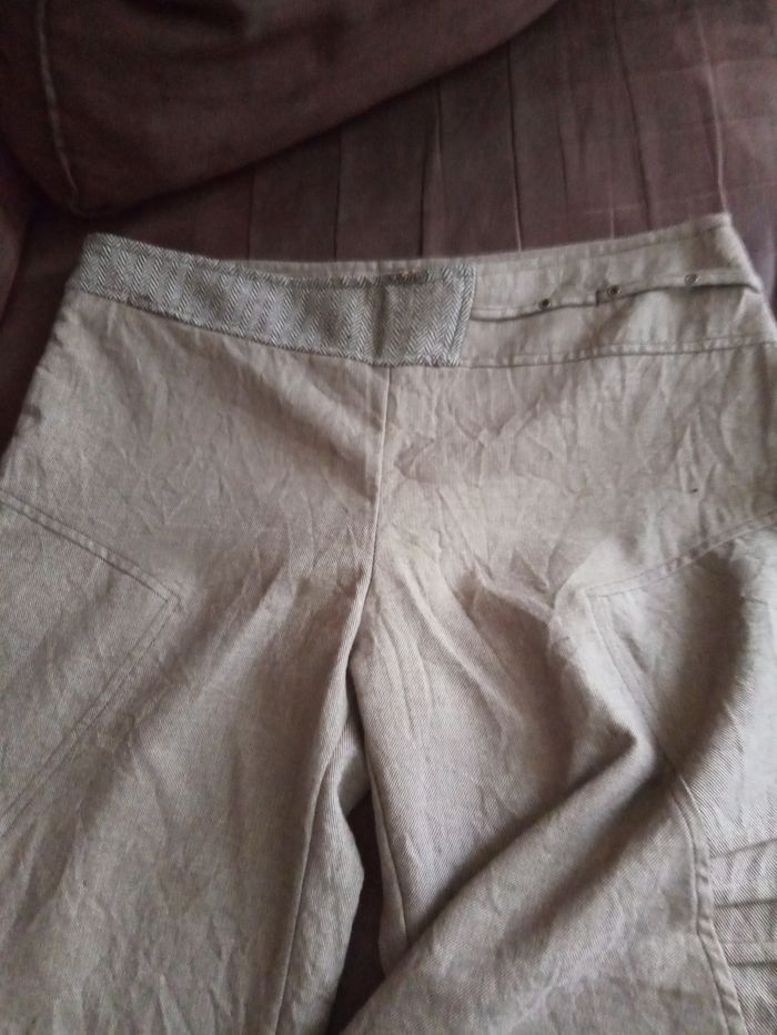 Élégant Pantalon/Pantacourt Taille 44 "Elliott" Couleur: Marron Taille non élastiquée, pas de passants, se ferme sur le côté par fermeture éclair Pas de Poches Jambes larges Dimensions: Longueur 86,5cm - Entrejambes 62cm - Taille non étirée 45cm - Hanches 57,5cm Matière: 100% Polyester Pantalon/Pantacourt comme Neuf, porté 2 ou 3 fois