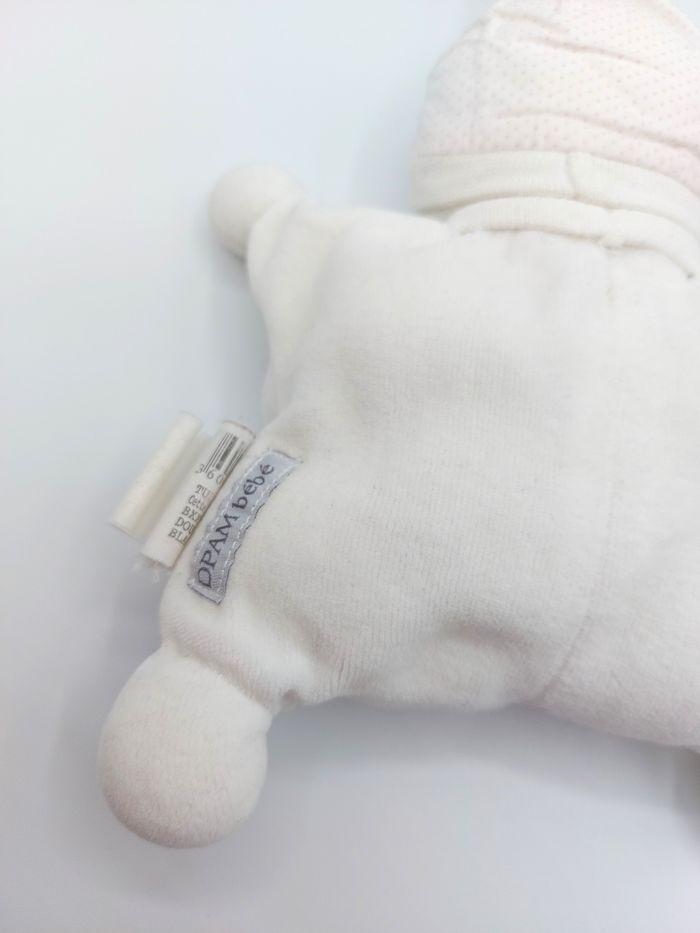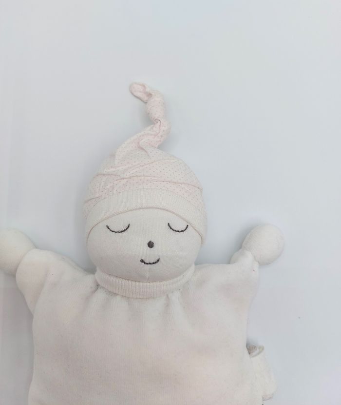Peluche doudou lutin blanc yeux dormeurs DPAM tulipe doudou bonnet pois rose - photo numéro 6
