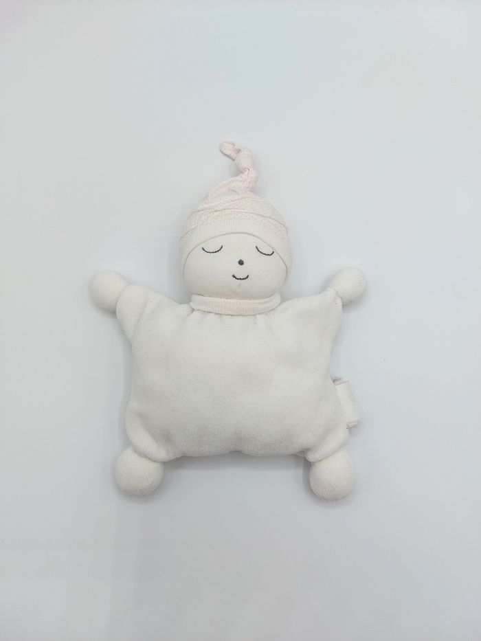 Peluche doudou lutin blanc yeux dormeurs DPAM tulipe doudou bonnet pois rose