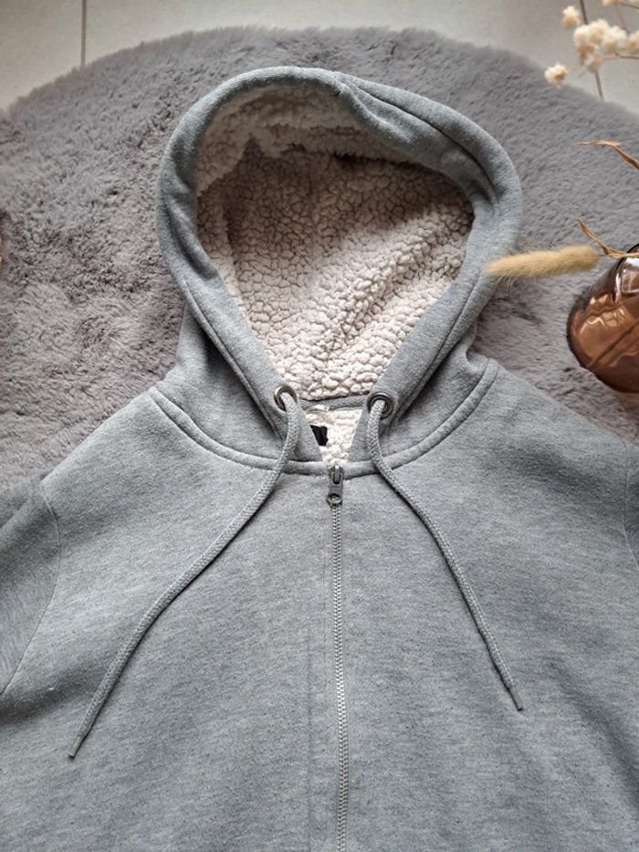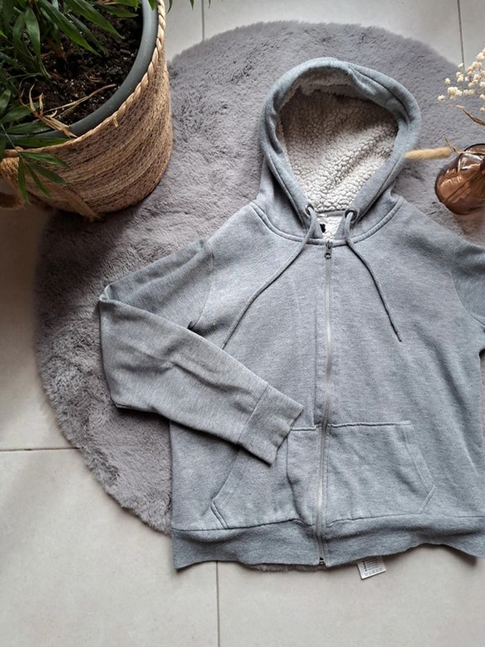 #veste #sweet a #fermeture et #capuche #grise interieur #moumoute #blanc 2 poches devant #jennyfer #tailleL #tresbonetat