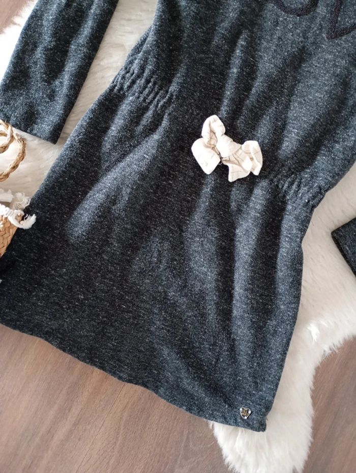 Petite robe matière pull sweat avec un joli col montant Bien chaud pour la rentrée scolaire cet hiver joli noeud et écriture "love" en paillettes strass il en manque un peu je crois #ikks #izianadixans