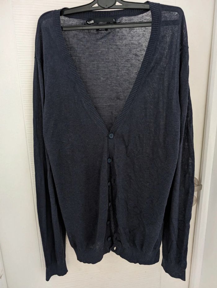 Gilet en v, neuf jamais lavé ni port ensuite étiquette enlève, fils tirés au niveau de l'étiquette