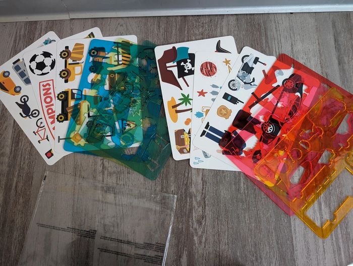 Lot de 6 pochoirs a dessin peu servi Pirates, véhicules, chantier , police, ferme et planètes