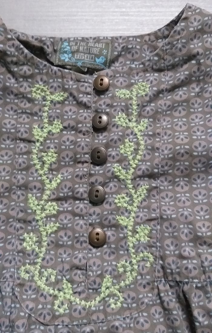 Tissaia, 3 ans, kaki/vert/turquoise.