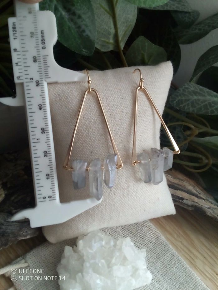 Boucles d'oreilles triangles de quartz aura - photo numéro 1