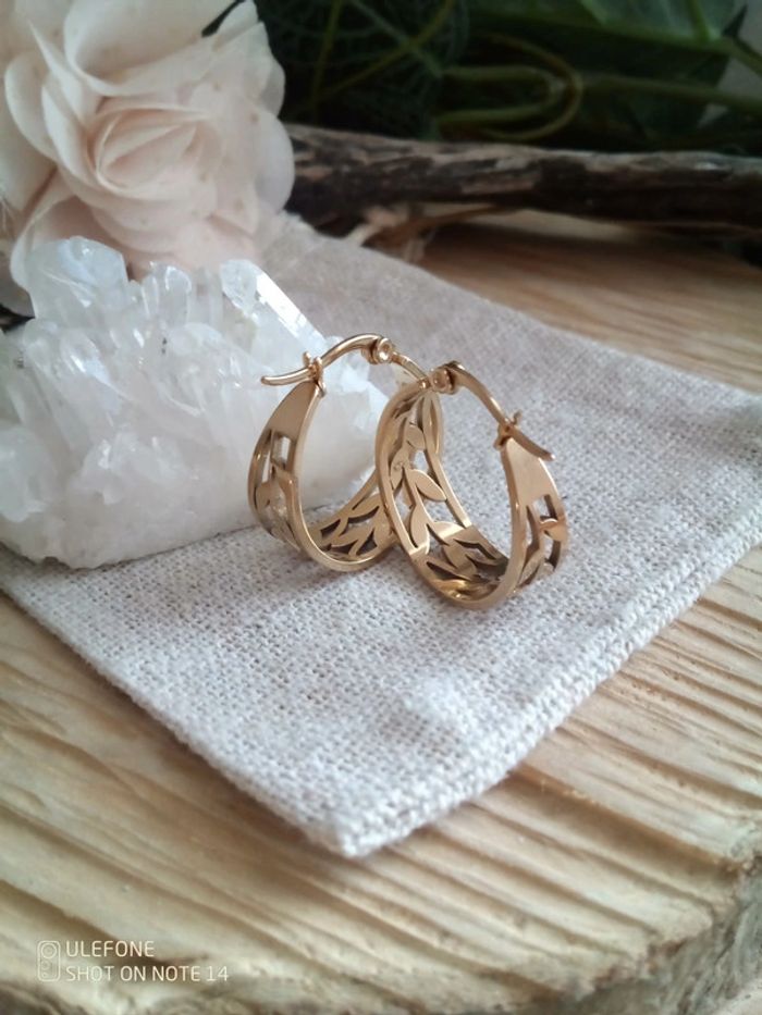 Créoles Bohèmes feuilles en acier inoxydable - photo numéro 3