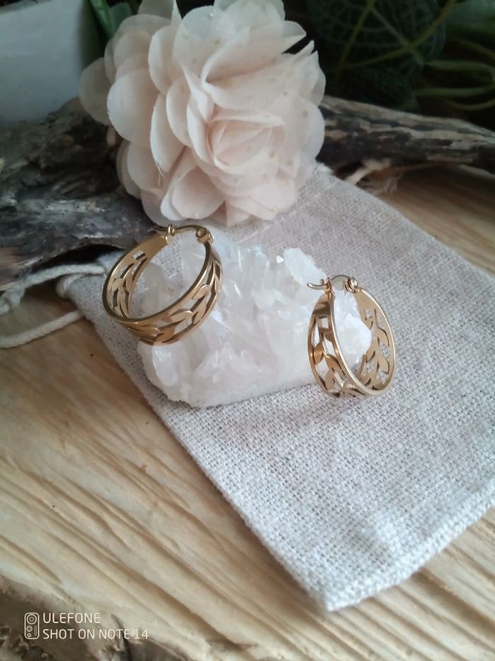 Créoles Bohèmes feuilles en acier inoxydable - photo numéro 1