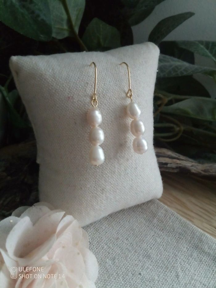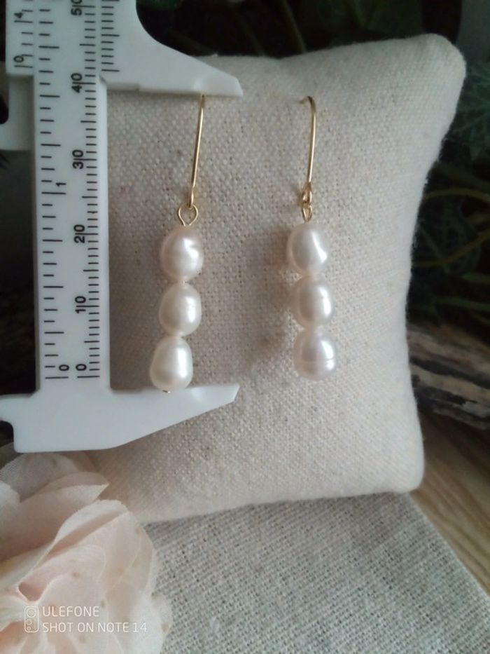 Boucles d'oreilles bohèmes perles de culture naturelles - photo numéro 3