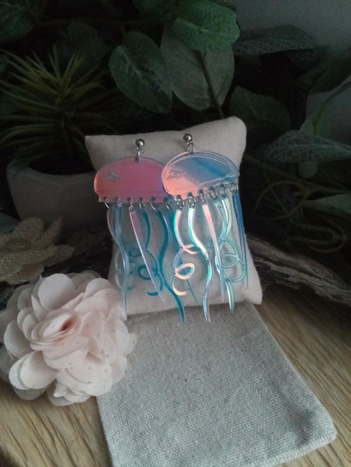 Boucles d'oreilles méduses bleues lumineuses - photo numéro 5