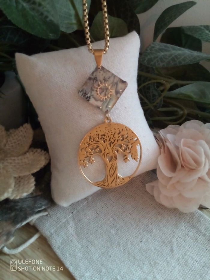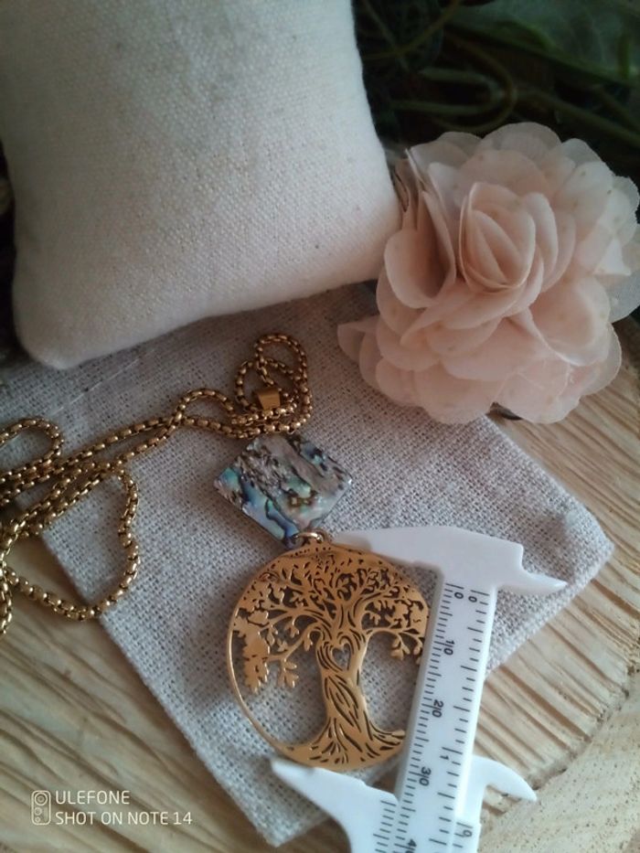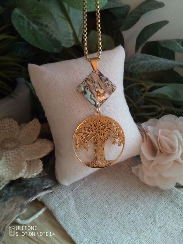 Collier abalone et médaillon arbre bohemia - photo numéro 1