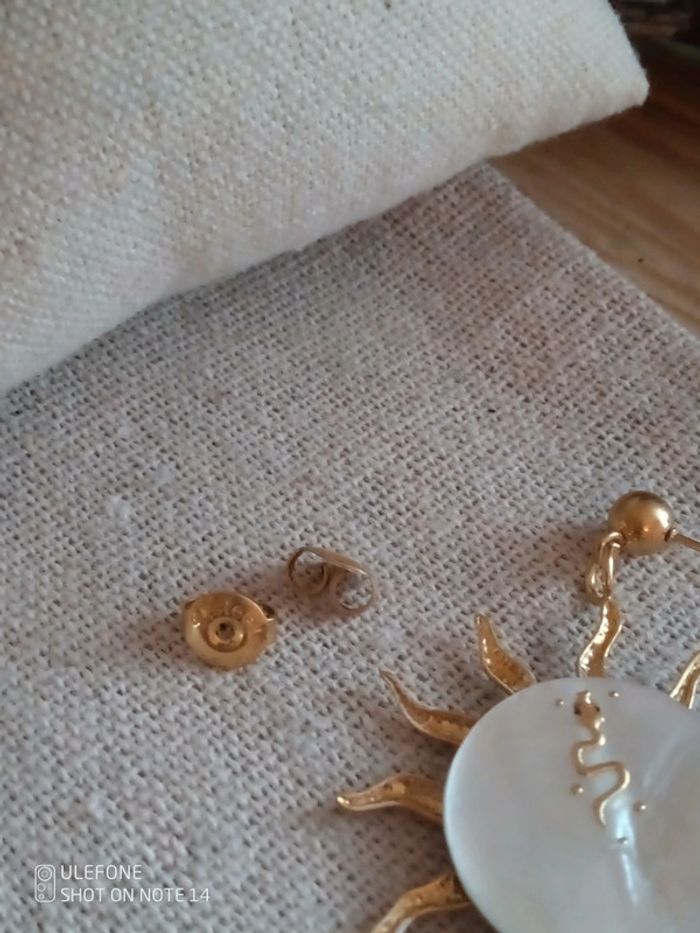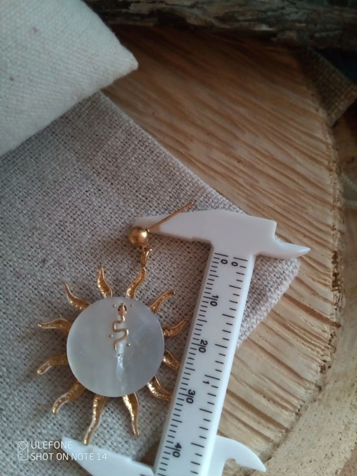 Boucles d'oreilles Soleils bohèmes et disques de n'a'c'r'e naturelles - photo numéro 4