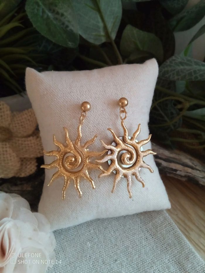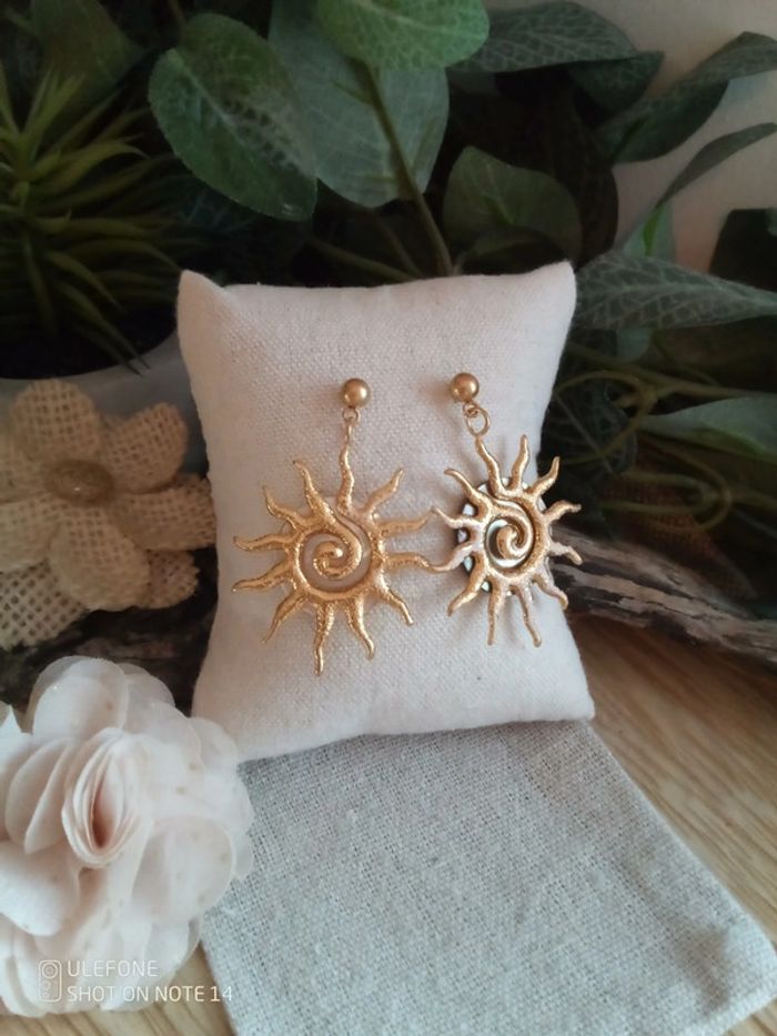 Boucles d'oreilles Soleils bohèmes et disques de n'a'c'r'e naturelles