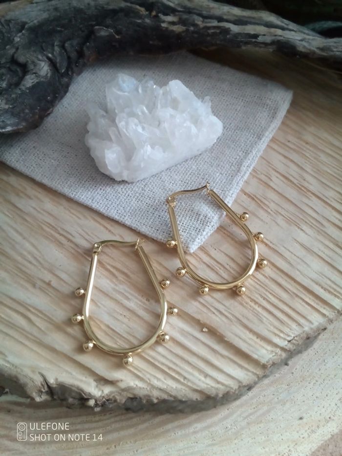 Boucles d'oreilles créoles bohèmes dorées - photo numéro 2