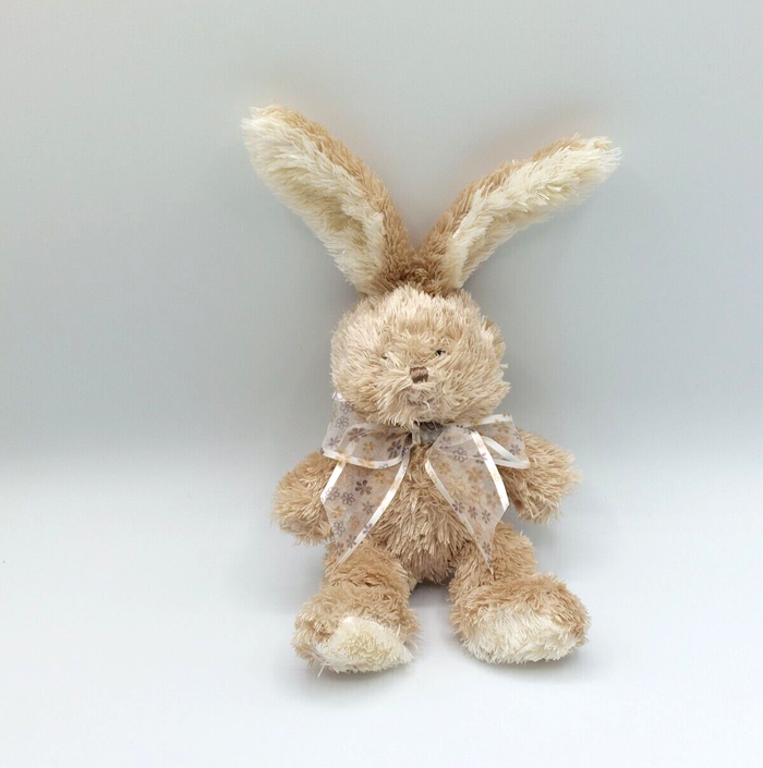 Peluche doudou lapin beige Nou mi Nou DIMA nœud transparent fleurs 26 cm - photo numéro 1