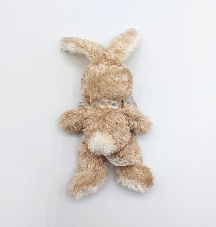 Peluche doudou lapin beige Nou mi Nou DIMA nœud transparent fleurs 26 cm