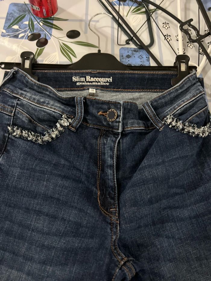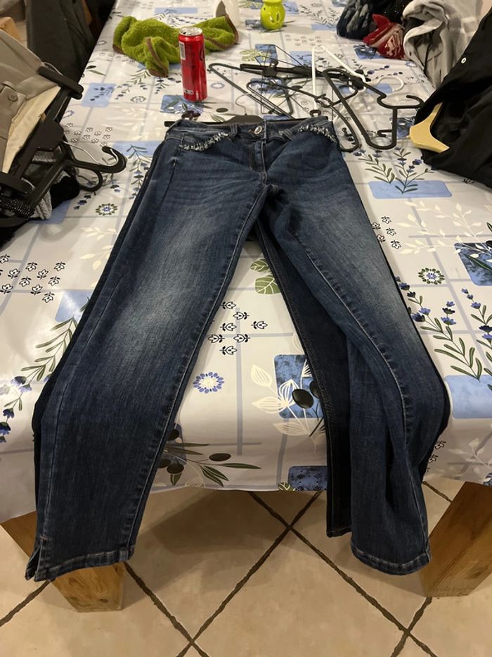 Jean bleu marine avec petites dentelle au poches taille basse 36