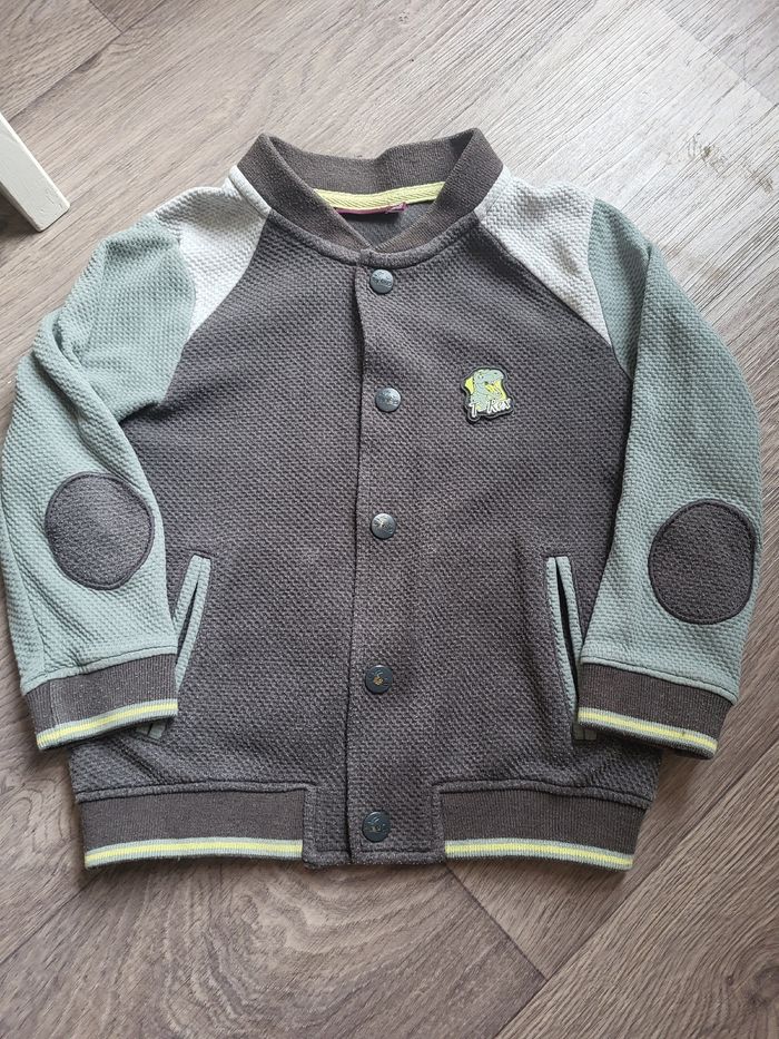 Gilet a pressions gris, blanc et sauge Motif dinosaure Les boutons sont légèrement écaillés