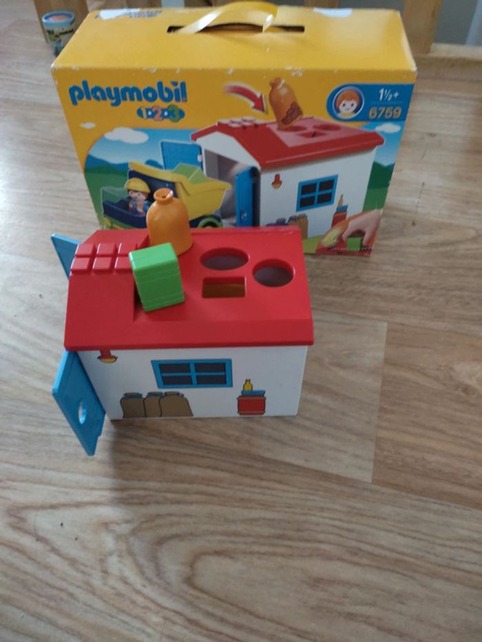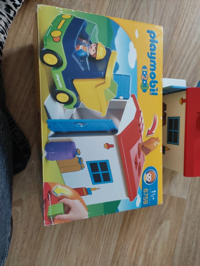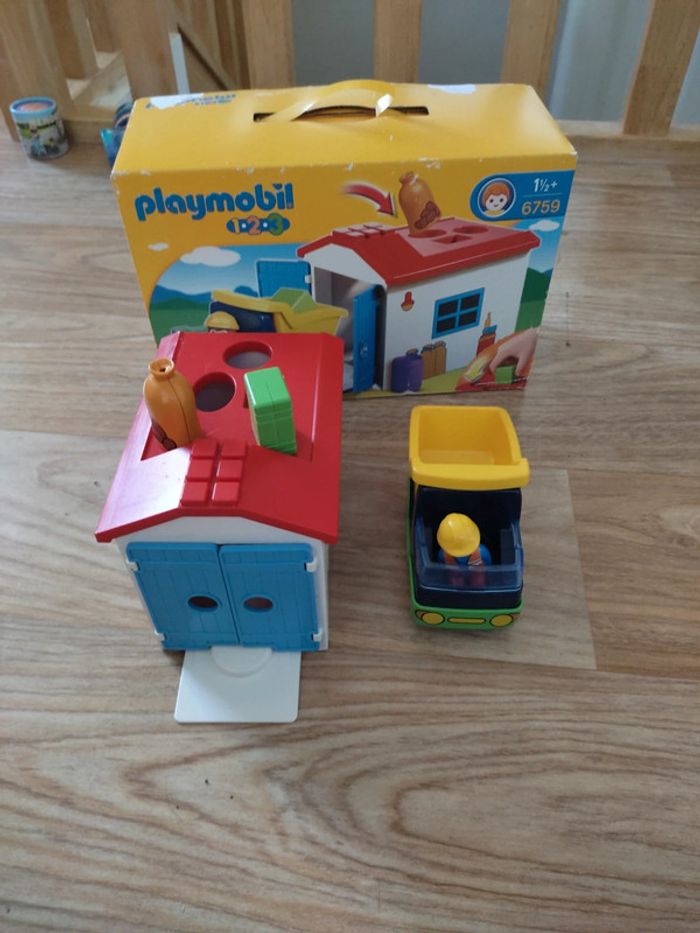 Playmobil 123 boîte numéro 6759 Camion avec garage Manque le baril violet. Dans sa boîte d'origine