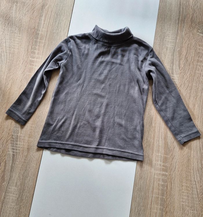 #melany71_4ans Josous pull manches longues à col en taille 4 ans 102 cm de la couleur grise 100 % coton de la marque Vertbaudet