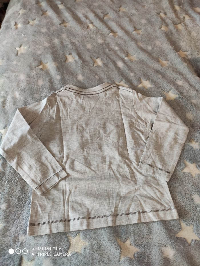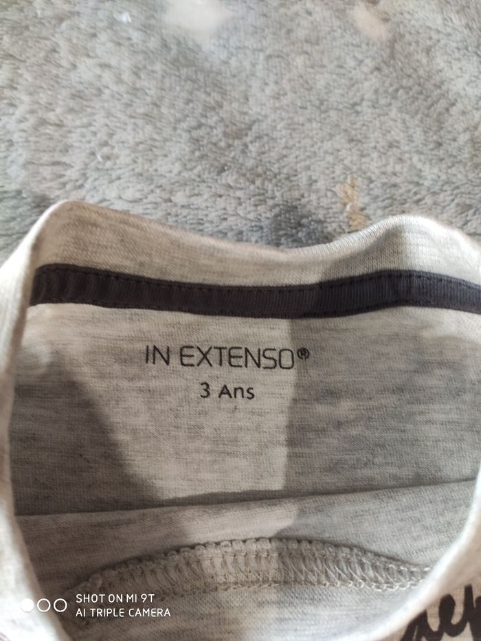 Tee shirt manches longues garçon taille 3 ans en très bon état, pas de tâches ni trous. Couleur gris clair avec graffiti sur le devant. Taille correctement et porté par un seul enfant sur une saison.