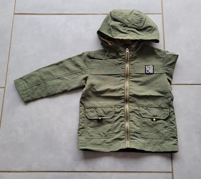Veste légère a capuche, de couleur vert, de la U Essentiel, taille 2 ans, en très bon état. Article lavé pour la vente.