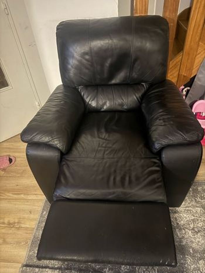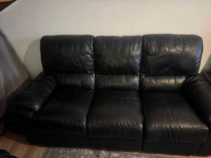 1 canapé 3 places 1 canapé 1 place Cuir noir Avec relax Très Bon état