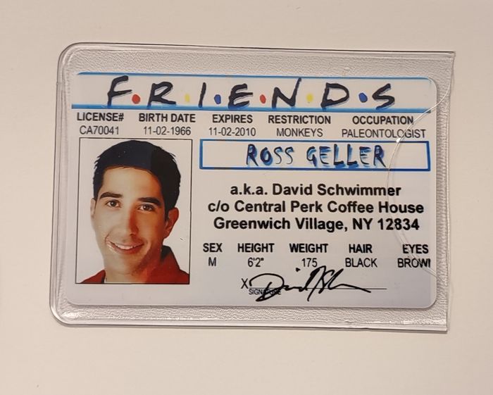 Badge de Ross Geller de la série Friends Taille : 8.6 / 5.4 cm Matière : PVC Recto