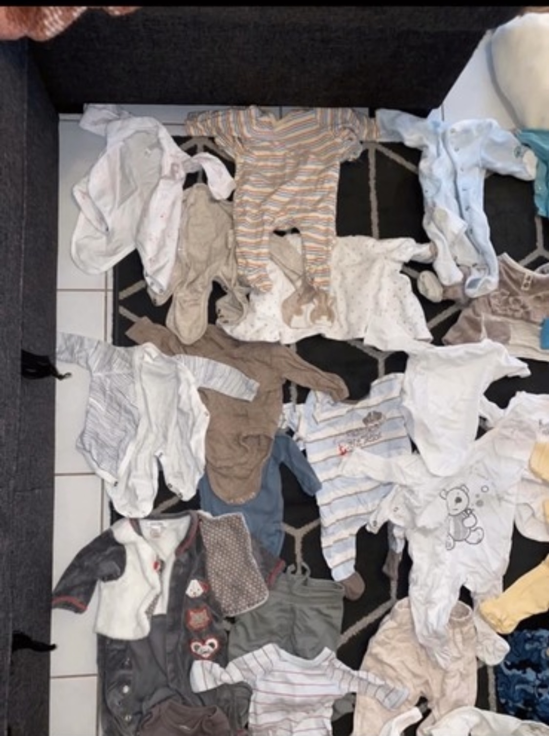 peu porter pour la plus part étant donner le choix très varier, acheter pour mon fils de 4 mois aujourd'hui il y'a tout ce qu'il faut même trop pour habiller un nouveau née de sa naissance à ses 3 mois on peut trouver une cinquantaine de pyjama et une cinquantaine de bodys. également dès pantalon-leggins des haut fin ou épais des vestes des chaussettes bonnet et gants etc. on y retrouve verbaudet du pareil au même zara h&m Kiabi okaidi acadi et d'autre marque encore il y a plus de 400€ de vêtements.