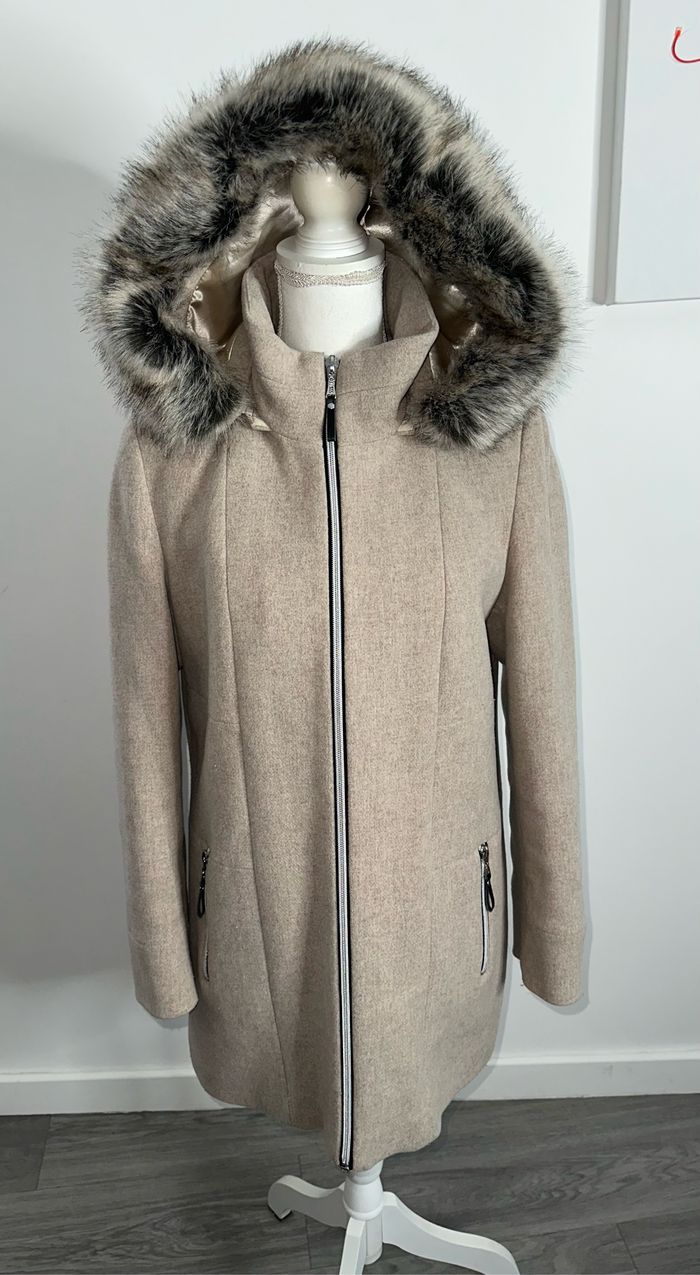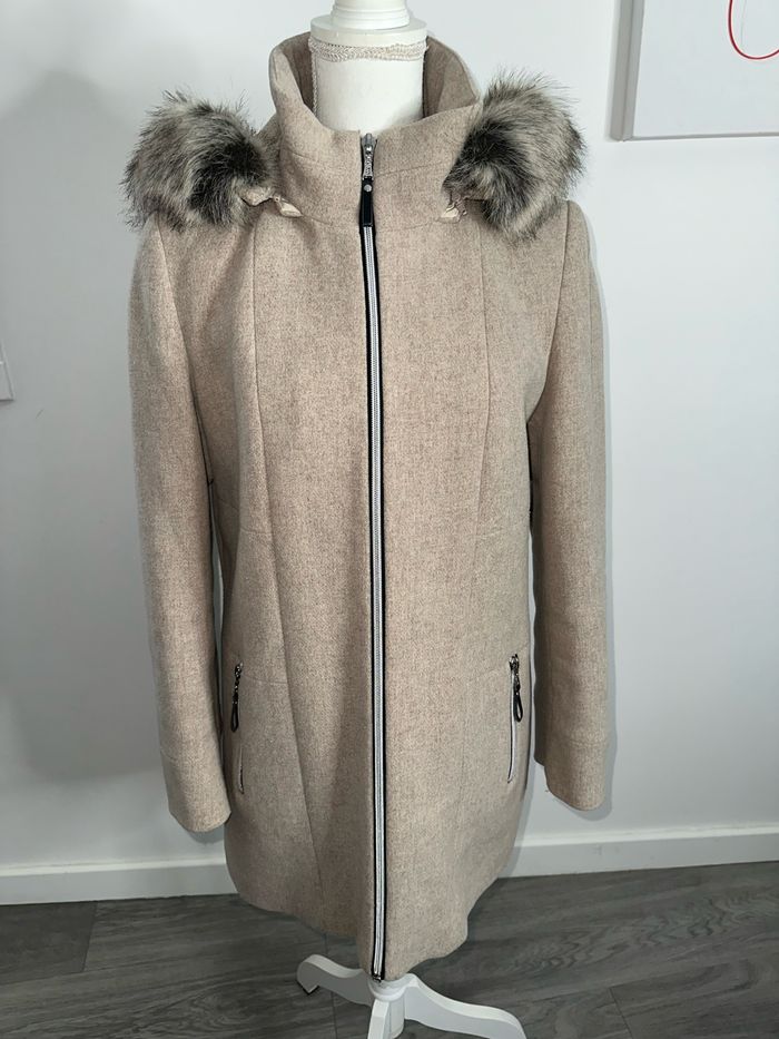 Parka en laine et fausse fourrure beige crème sable Christine Laure T1 38/40 M/L - photo numéro 1