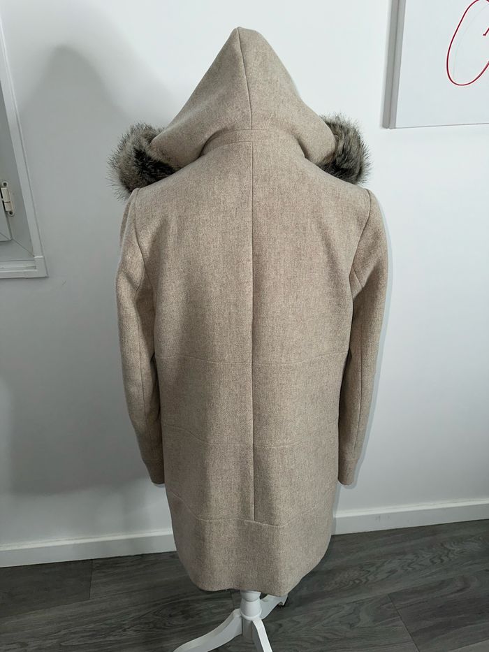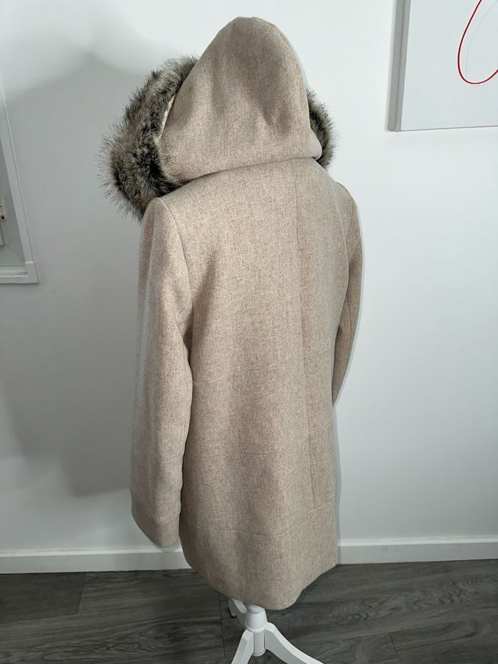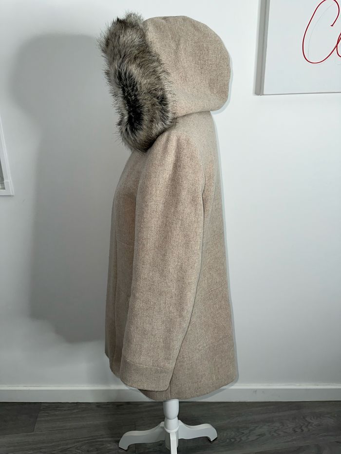 Parka en laine et fausse fourrure beige crème sable Christine Laure T1 38/40 M/L - photo numéro 7