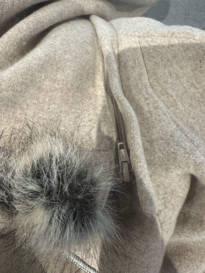 Parka en laine et fausse fourrure beige crème sable Christine Laure T1 38/40 M/L - photo numéro 9