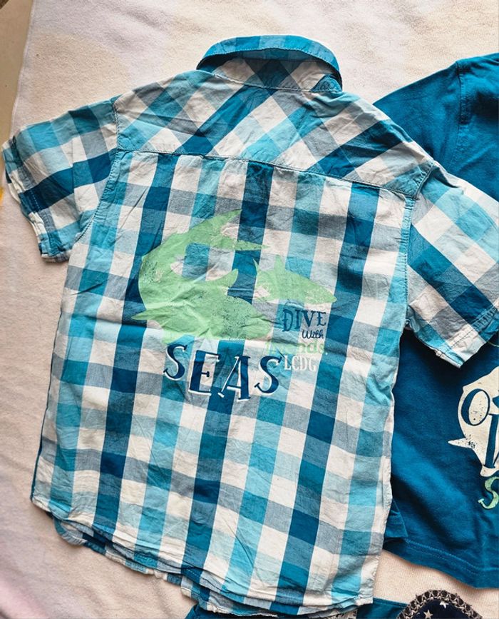 joli ensemble 📌Marque :la compagnie des petits 📌Taille :8ans chemise et t shirt 6 ans pantalon 📌Motif : graphisme et logos/ uni 📌Coloris :bleu blanc J ai d autres pièces du même thème dans mon dressing Pour voir tout mon 8ans tapez dans la barre de recherche #8ansgarçonlili29217