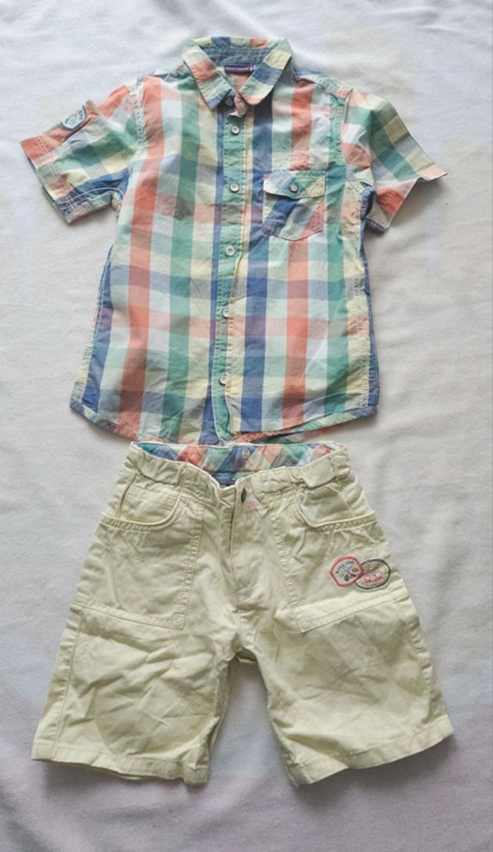 joli ensemble 📌Marque :sergent major 📌Taille :7 ans chemise 5 ans short 📌Motif : carreaux/ uni 📌Coloris :bleu vert jaune orange Pour voir tout mon 7 ans tapez dans la barre de recherche #7ansgarçonlili29217